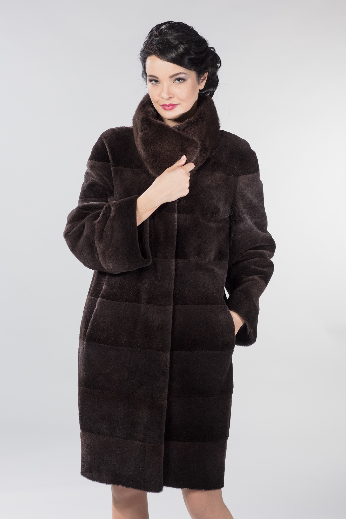 Шуба из стриженной нутрии модного поперечного кроя. Модель станет головокружительным открытием вашего зимнего гардероба. Силуэт прямой, немного заужен книзу. Выверенный до мелочей крой лучшим образом подчеркнёт достоинства вашей фигуры. Ассиметричный воротник-стойка из меха норки и расширенный рукав добавят в образ элегантности и загадочности. Используется прочная импортная фурнитура. Шуба из меха стриженой нутрии смотрится как норковая, но более доступна по цене. «Лаванда» – чарующая нотка стиля для вашей привлекательности.Характеристики